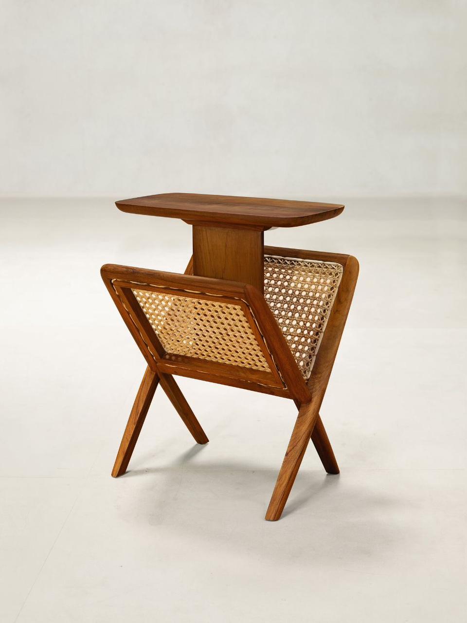The Cane Magazine Side Table brings function and style together in a minimal, mid-century inspired form. Crafted in warm-toned wood with an angled cane panel, it neatly holds magazines, books, or tablets while the slim tabletop keeps your coffee, lamp, or décor within easy reach. Ideal for living rooms, reading corners, and bedrooms, this piece adds lightness and texture without occupying much floor space.