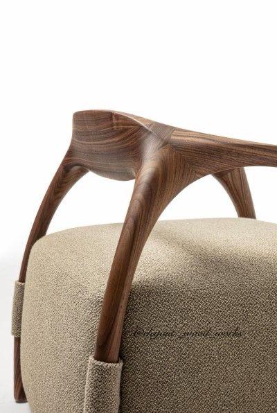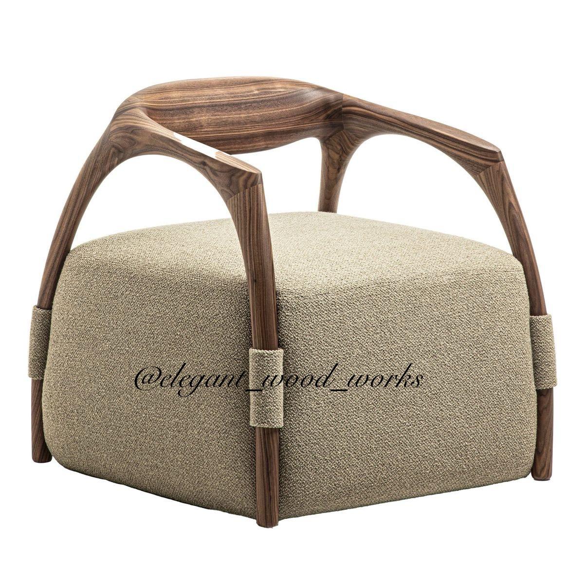 This lounge ottoman chair combines an architectural wooden frame with a generous cushioned seat for a refined yet relaxed seating experience. The smooth, sculpted wood arches wrap around the upholstered base, creating a visually striking form while maintaining comfort and stability. Ideal for modern living rooms, studio spaces, or minimalist interiors, it serves as both a functional seat and a premium design statement.
